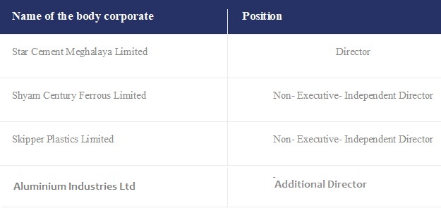 Mr. Pramod Kumar Shah, is a Fellow member of the Institute of Chartered Accountants of India and has over 35 years of experience in practicing accountancy with an expertise in the area of internal audit. He has graduated with a Bachelor's Degree in Commerce from Calcutta University. Mr. Shah has written, compiled and edited books and social and cultural magazines, and participated in T.V. talk shows that were aired on Discovery Channel, Kolkata Doordarshan, Taaza T.V. and radio talk shows broadcasted from Akashwani Kolkata. He was the Past President of All India Marwari Yuva Manch.